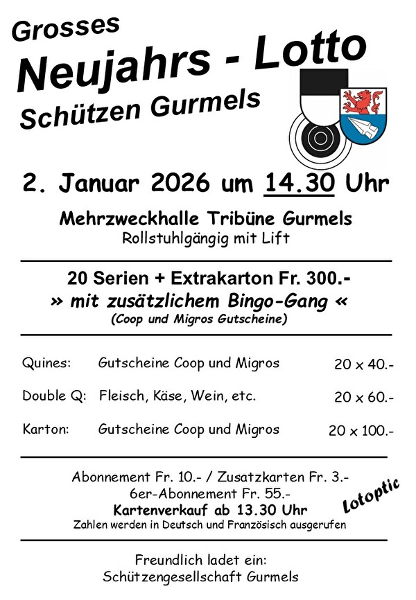 Traditionelles Neujahrs Lotte der Schützengesellschaft Gurmels am Bärzelistag